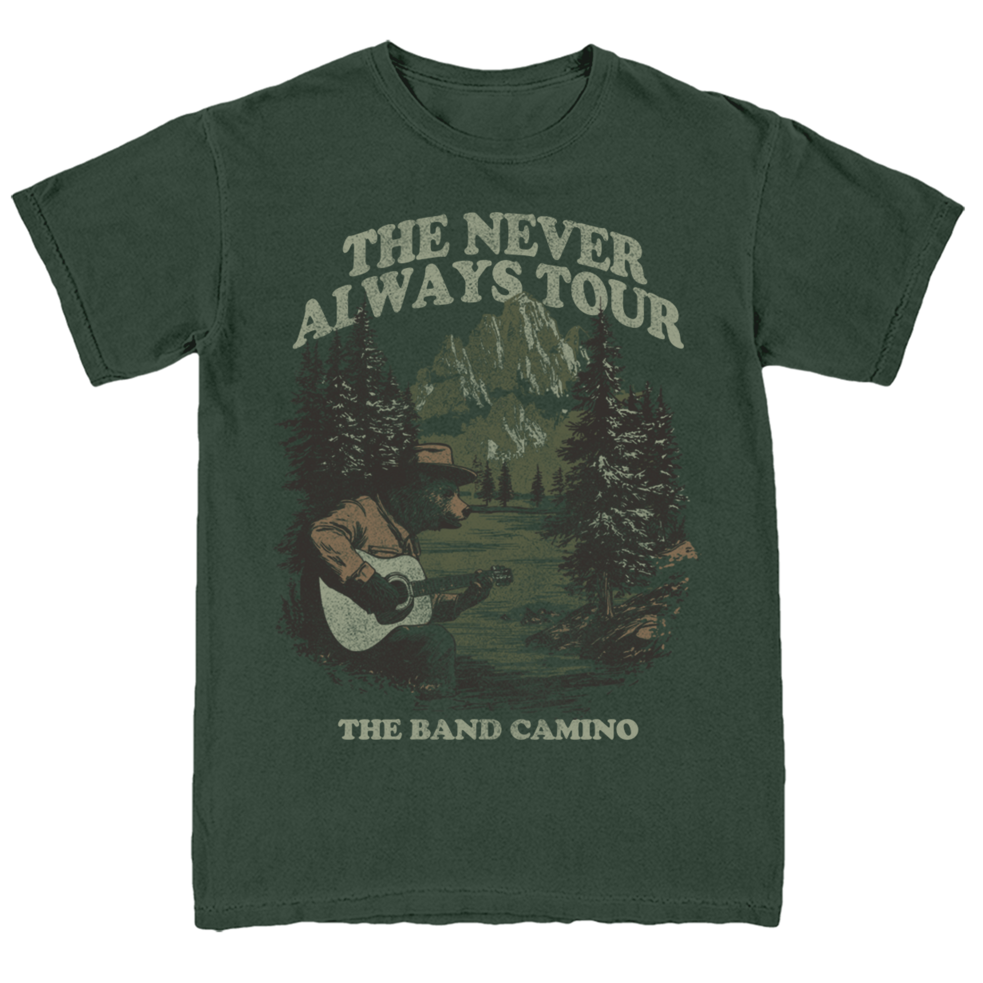 The Band Camino Bear Tee in forest green with front print only.