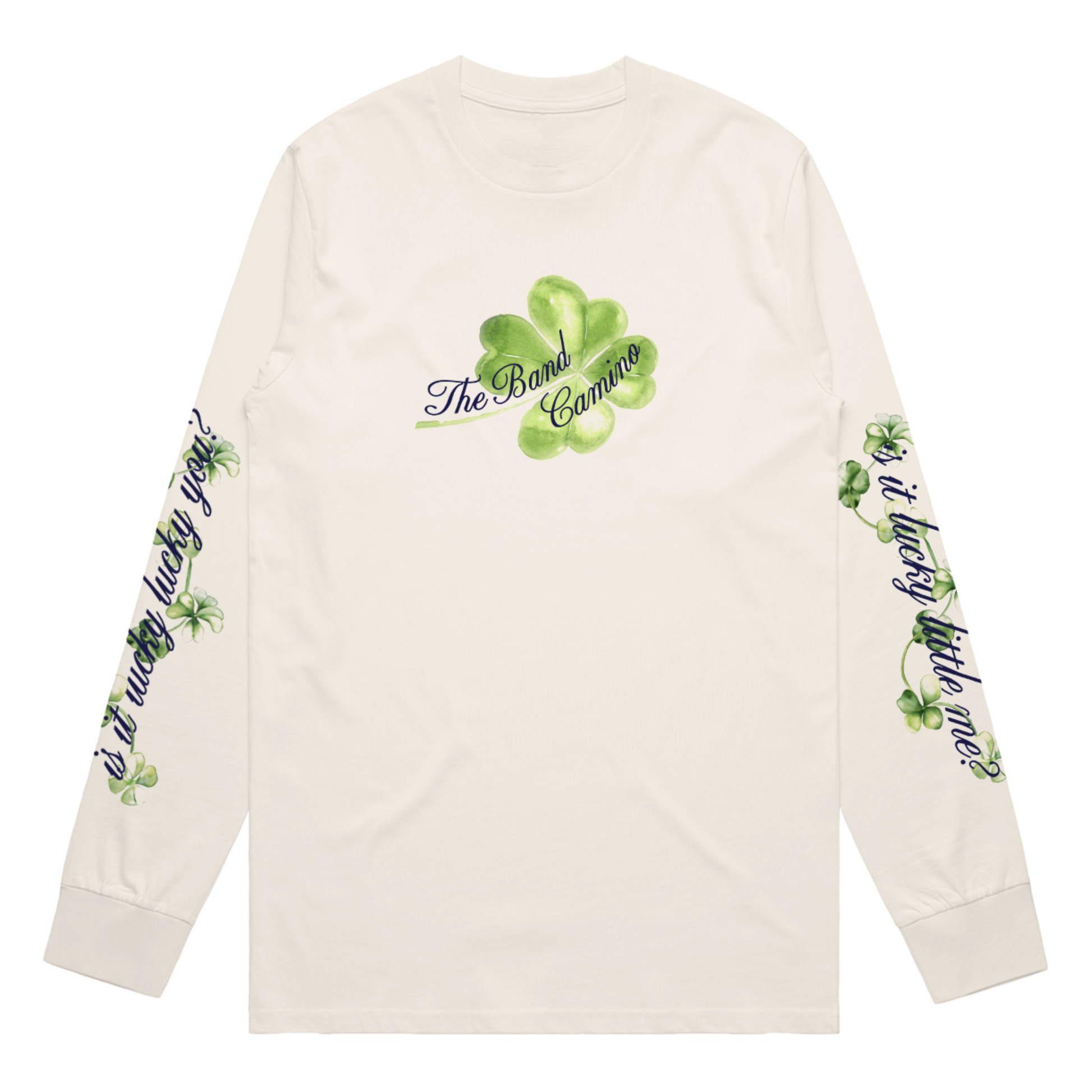 The Band Camino clover long sleeve tee in "natural" with front and sleeve print.