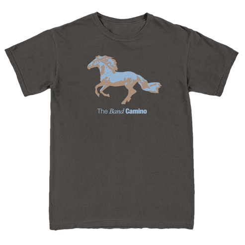 The Band Camino Horse Tour Tee in charcoal with front and back print.